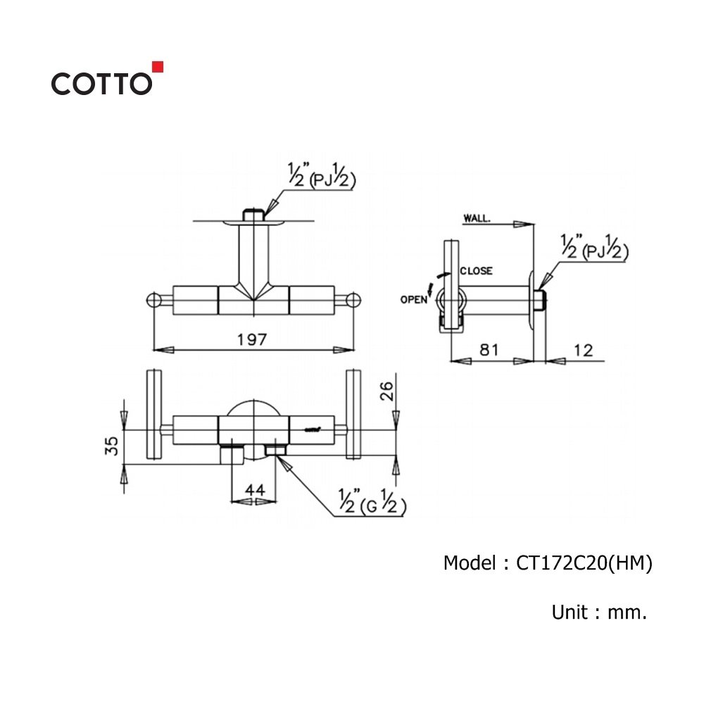CT172C20(HM) วาล์วเปิด-ปิดน้ำเข้า 1 ออก 2 (สำหรับฝักบัวสายอ่อนและรองน้ำใส่ถัง) รุ่น CROSS