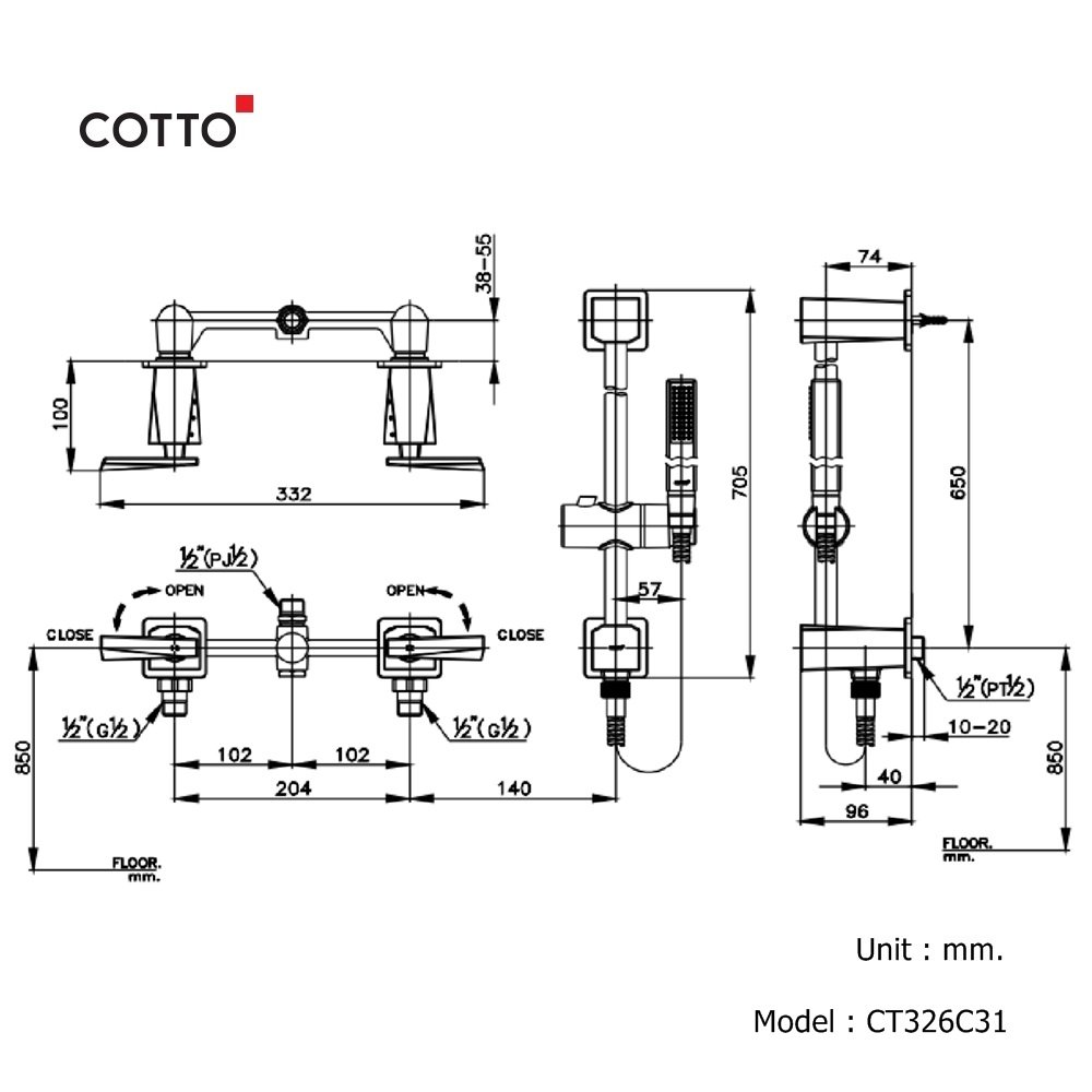 CT326C31ST#BN วาล์วผสมเปิด-ปิดน้ำชนิดฝังผนังพร้อมฝักบัวอาบน้ำและราวแขวนปรับระดับ รุ่น GLACIER