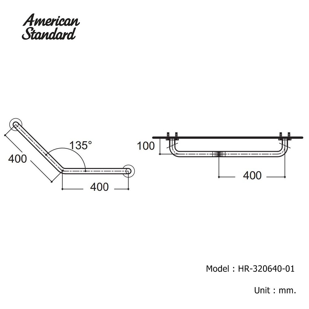 HR-320640-01 ราวทรงตัว รูปตัววี ⌀32 มม. ขนาด 400x400 มม. ผิวขัด Hair-line